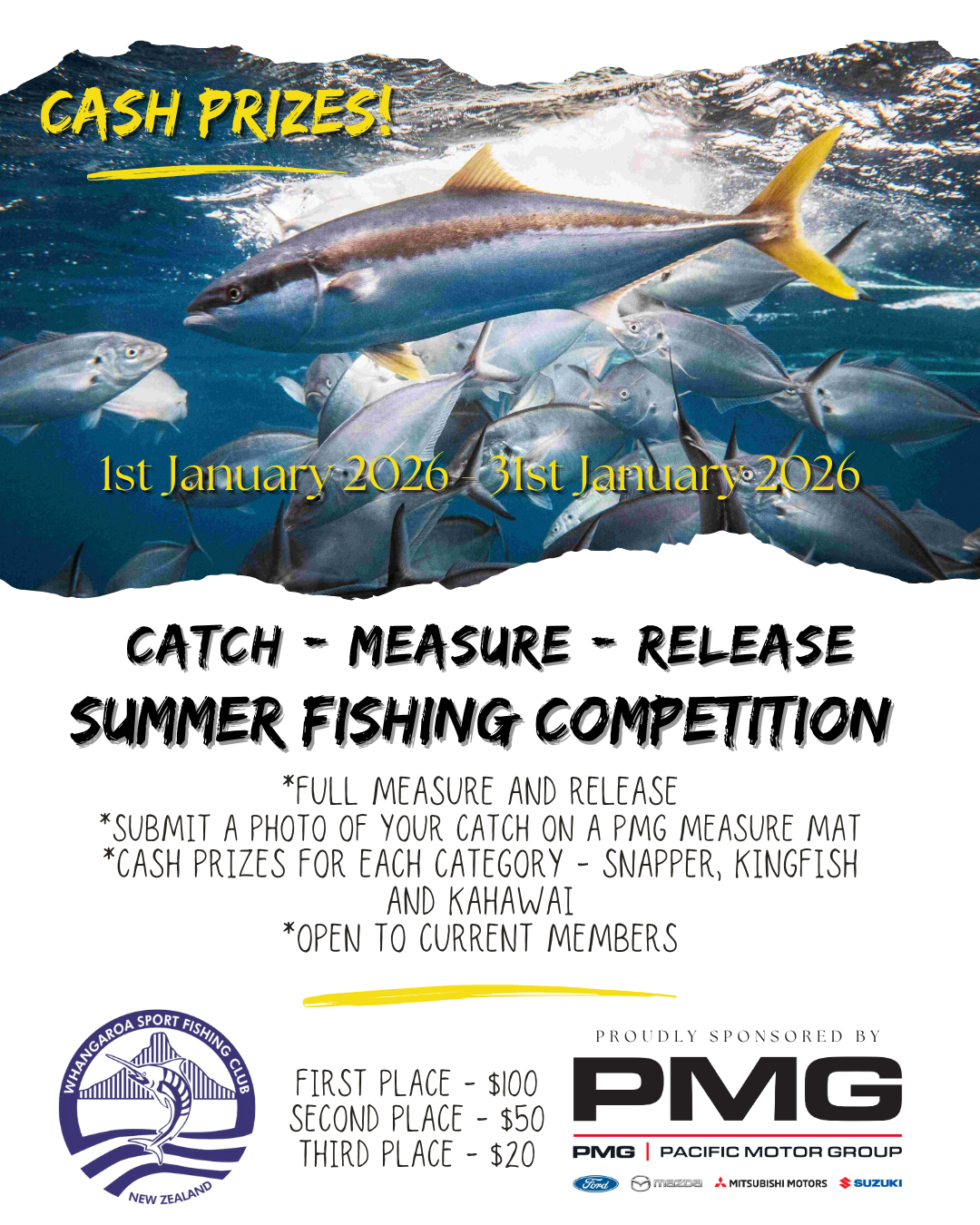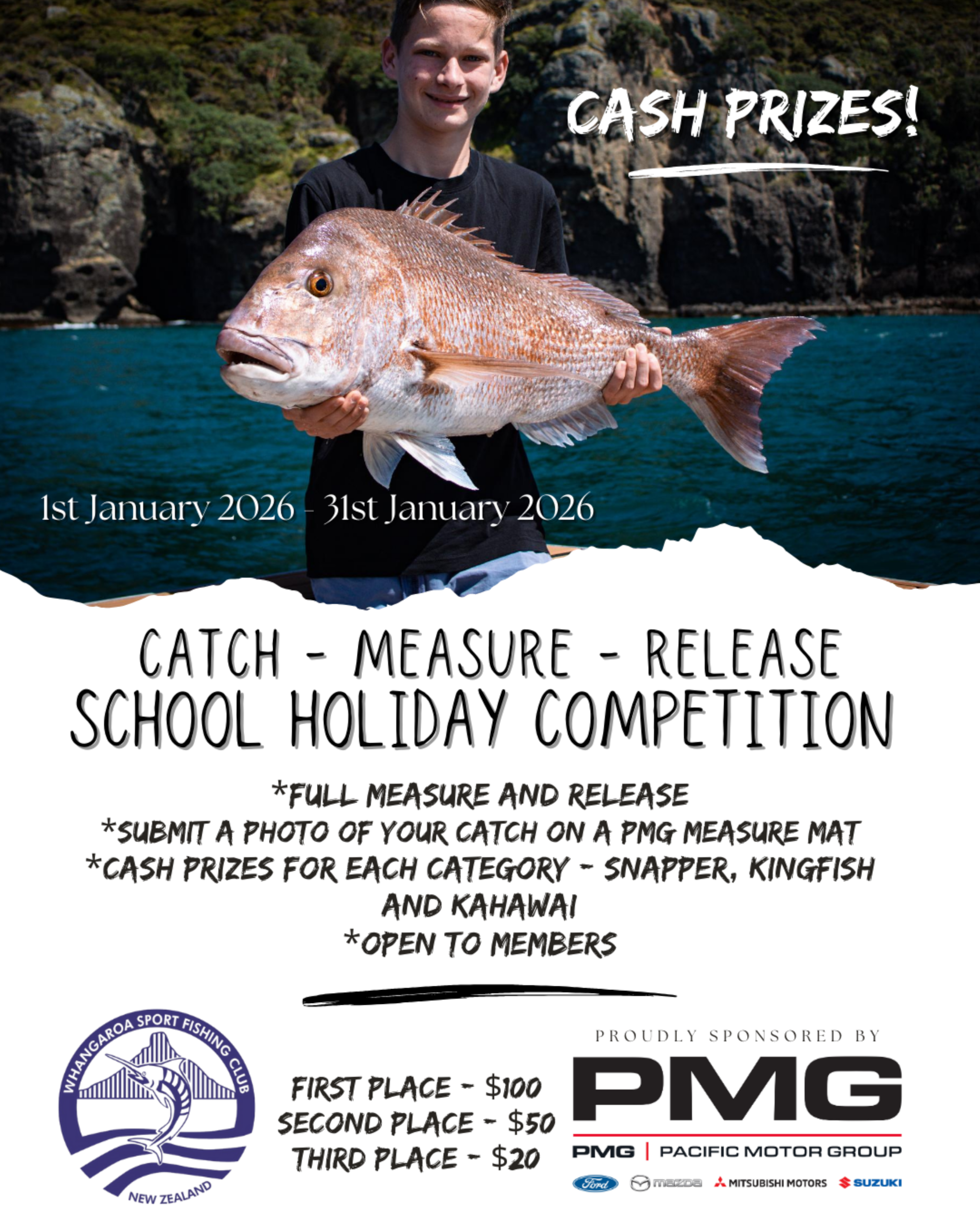| Kingfish Tournament | Friday 10th, Saturday 11th & Sunday 12th July 2026 (Matariki Public Holiday) |