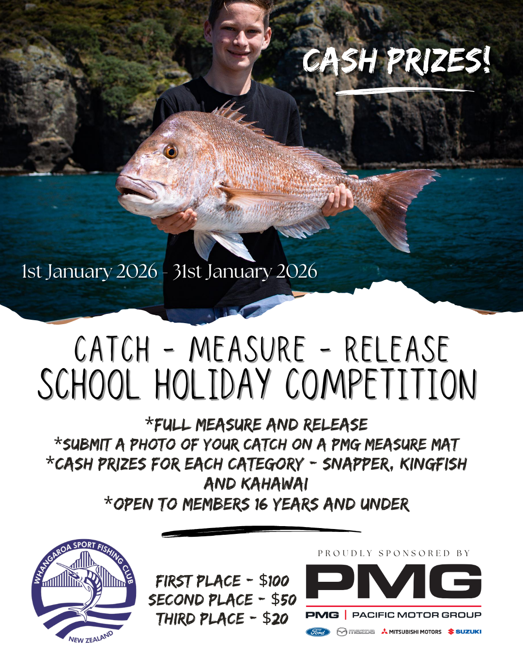 | NZ 6kg Light Tackle Contest | Saturday 30th May, Sunday 31st & Monday 1st June 2026 (King's Birthday) |